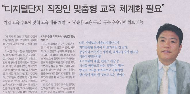 - 이시헌 고용부 관악지청 훈련기관 협의회 회장 / 글로벌산업기술교육원 이사장 기업 교육 수요에 맞춰 교육 내용 개발 … ‘선순환 고용 구조’ 구축 우수인력 확보 가능 기사 작성일 : 10-10-22 13:51 “재직자 맞춤형 교육을 추진해 서울디지털단지 기업에게 필요한 핵심인재 양성하는데 기여할 계획이다” 이시헌 고용노동부 서울관악지청 훈련기관협의회 회장 (글로벌산업기술교육원 이사장)은 서울디지털단지 1만여 입주기업이 발전하기 위해선 취업예정자, 재직자의 맞춤형 직무능력 향상 교육시스템을 정비할 필요가 있다고 주장한다. CEO들이 경영에 필요한 교육내용이 무엇인지 의견을 개진하고 교육기관에선 이를 반영해 교육과정을 개설해 기업과 교육기관이 수시로 필요한 교육을 협의 운용할 수 있는 시스템을 구축할 필요가 있다는 것이다. 고용보험 재원을 활용해 이같은 시스템을 구축하면 서울디지털단지 기업이 우수인력을 확보하고 양성하는데 실질적인 도움을 줄 수 있다는게 이 회장의 생각이다. 이 회장은 “서울디지털단지는 IT관련 기업들이 많기 때문에 맞춤형 IT교육을 실시하면서 필요한 인력을 적재적소에 배치하는 체계를 만들면 큰 시너지 효과를 낼수 있다”면서 “특히 소프트웨어 기업은 3년이상 경력이 있는 개발자에 대한 수요가 많지만 구하기 어려운데 교육을 체계적으로 진행하면 내 외부 인력을 최대한 활용해 해결할 수도 있다”고 말한다. 서울디지털단지 전체 직장인 교육시스템을 구축하면 그것을 매개로 고용시스템도 선순화적으로 만들 수 있다는 얘기다. 지역맞춤형 직무교육, 생산성 향상 성과 커 이시헌 회장의 이같은 구상은 다른 지역에서 진행한 취업자, 재직자 교육 경험과 성과에 바탕을 두고 있다. 이 회장은 2009년에 포스코 제철소가 위치한 전남 광양시의 근로자 종합복지관 센터장을 역임하면서 용접공 등 지역산업에 맡는 교육을 실시한 결과 지역 내 취업율을 90%대로 올리고 현업에 바로 투입해 일을 할 수 있는 여건을 마련했다. 또 맞춤형 재직자 교육은 괄목한 성과를 거뒀다. 포스코는 신입직원은 1년동안 의무적으로 교육을 하고 하청업체는 6개월동안 교육을 시킨다. 그결과 10년전보다 인원은 줄었지만 매출은 더 성장하는 ‘고용없는 성장’을 이루고 있다. 포스코의 자체 조사결과에 따르면 10%의 생산설비투자는 약 3.63% 매출상승을 일으키지만 10%의 교육 투자는 약 7.3% 성장으로 약 2배가량 효과가 있는 것으로 나타났다. 올해 6월부터는 경기도 이천시 근로자종합복지관 센터장을 맡아 물류창고가 많은 이천시의 특성에 맞는 취업, 직장인 교육을 진행하고 있다. 물류창고는 관련 직종만해도 물류관리사, 지계차 운전 등 33가지나 되지만 심한 인력난에 허덕였다. 하지만 지역 맞춤형 교육을 실시한 결과 지게차의 경우 전국 평균 1차 합격률은 53%지만 이천시는 90% 이상에 이를 정도로 큰 성과를 거뒀다. 이 회장은 “다른 지역보다 서울디지털단지가 지역맞춤형 교육이 더 효과적일 것 같다”고 말한다. 광양시나 이천시는 생산직, 육체노동자가 많지만 서울디지털단지엔 소프트웨어 개발, 컨텐츠 개발 등 지식을 바탕으로 하는 직장인이 많아 양질의 교육을 효과적으로 진행하면 생산성이 훨씬 클 것으로 보는 것이다. 이 회장은 “세계적인 오토바이 생산업체인 할리데이비슨 노동자가 4만명에서 4,000명으로 줄었지만 노사정(노동자, 기업, 정부)이 힘을 합쳐 교육을 실시한 결과 세계 굴지의 기업으로 우뚝섰다”면서 “서울디지털단지 모든 기업이 교육을 통해 성장을 할 수 있도록 맞춤형 시스템을 구축할 계획”이라고 포부를 밝혔다. 훈련기관협의회, 고용노동부지청과 협조 이 회장이 운영하는 글로벌산업기술교육원은 재직자와 실업자들의 직무훈련을 통해 개인의 직무능력 향상은 물론 기업에 핵심인재를 배치하기 위한 국비교육기관이다. 재직자는 60~100% 가량 수강료를 환급받고 실업자는 능력개발카드제도를 통해 적재적소의 기업에 배치될 수 있도록 지원하고 있다. 글로벌산업기술원은 2008년 하반기부터 생산성본부에서 금천구 기능사 고사장으로 지정해 ITQ, ETQ, ERP 등 각종 자격시험을 매달 1회 이상씩 진행하고 있다. 이시헌 고용노동부 관악지청 훈련기관협의회 회장을 겸하고 있다. 훈련기관협의회는 각 고용노동부지청에 다양한 훈련사항에 대한 문제점 및 예방 대책 등을 전달해 지역의 교육발전에 이바지하는 곳이다. 또 협의회는 직원들을 직접 고용노동부 지청에 파견해 교육관련 민원을 해결하는 등 각 고용노동부지청과 서로 윈윈하는 방식을 취하고 있다. 이 회장은 훈련기관협의회가 앞으로 직장인 직무교육과 함께 화목한 가정을 만들기 교육도 개설할 것이라고 말한다. 컴퓨터, 홈페이지, 요리 등 다양한 교육과정을 개설해 가족끼리 소통할 수 있는 계기도 만들고 직장에서는 생산성 향상을 만들 수 있는 여건을 마련할 계획이다. 이일우 기자 fudddy@hanmail.net