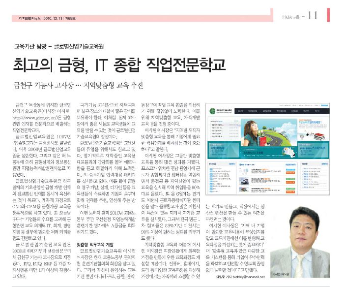 [디지털밸리뉴스] 최고의 금형, IT종합직업전문학교-글로벌산업기술교육원