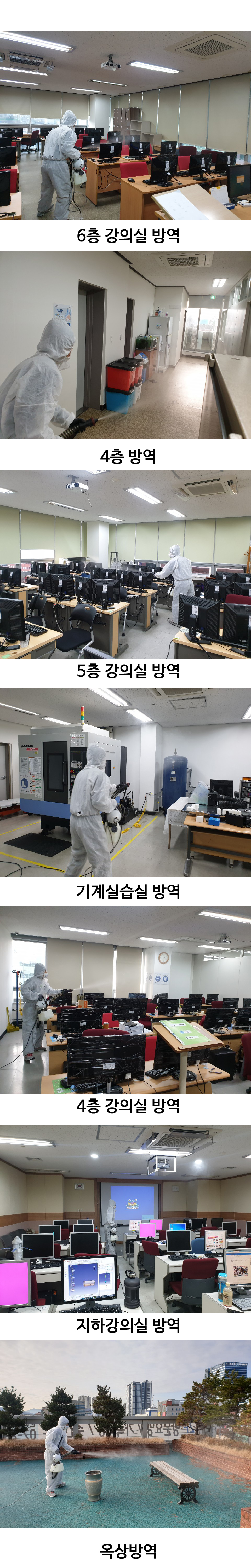 저희 글로벌에선 2월 26일 (수) 2차 방역 소독을 실시하였습니다. 수업이 시작하기 전 방역업체에서 지하, 4층, 5층, 6층, 옥상 전층 방역을 실시 하였습니다.