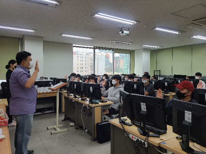 *입학식* 로봇설계를 통한 스마트제조 가상화 구현(CATIA, VR) 20.08.07(금) 금일 교육원에서 4차산업혁명 선도인력양성사업 카티아 과정 입학식을 진행하였습니다. 글로벌 실장님의 안내로 입학식이 시작되었습니다. 글로벌 교육원 이사장님의 훈화말씀으로 훈련생분들의 사기를 북돋았습니다. 적극적으로 참여하셔서 4차산업을 선도하는 인재가 되셨으면 하는 바람입니다. 사전평가에서 가장 우수한 성적을 받으신 조성익 훈련생이을 대표로 선서를 진행하고있습니다. 앞으로 수업 즐겁고 알차게 수강하시기 바라며 잘 부탁드리겠습니다. 입학 축하드립니다~ |